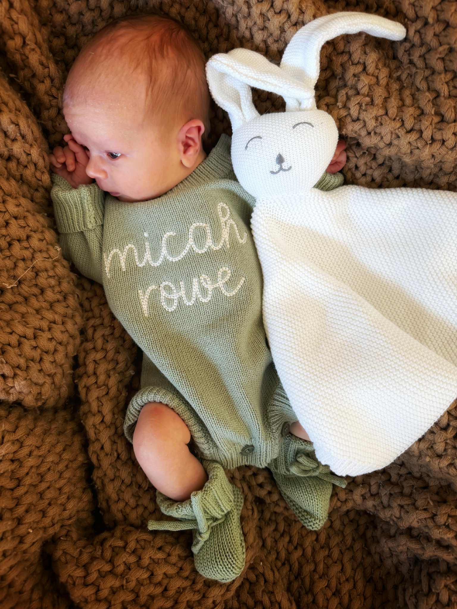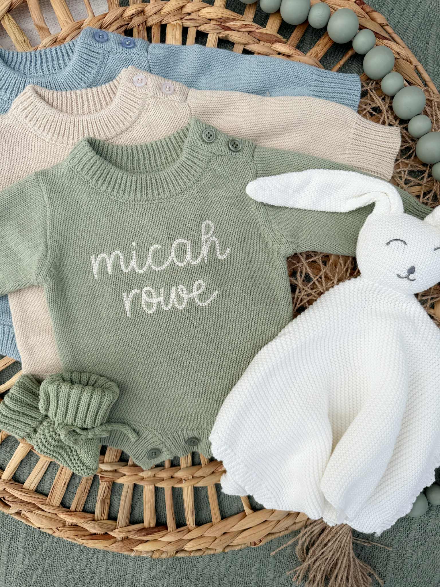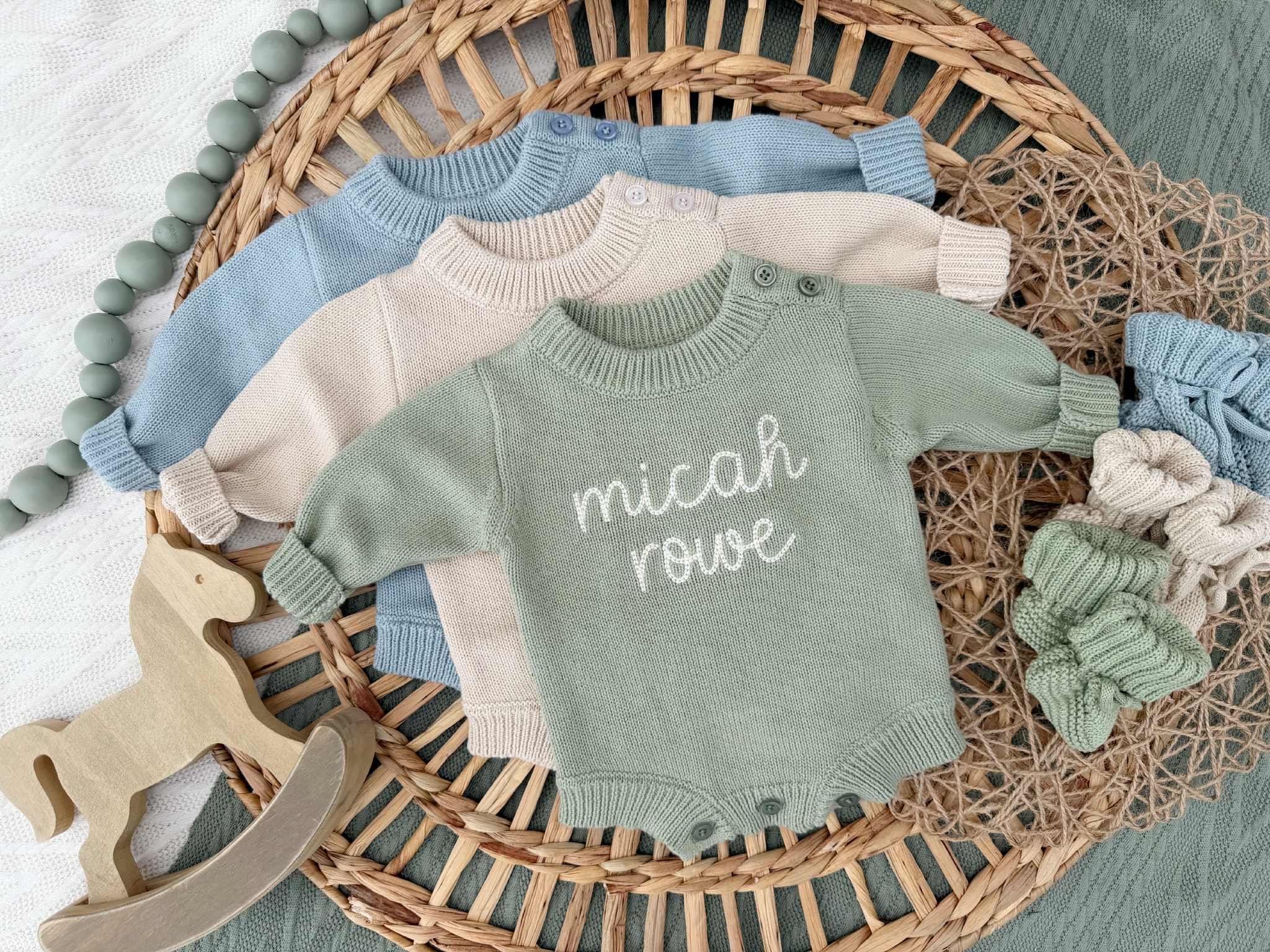 This sweater bubble outfit is completely unique and perfect for a little one! Perfect for baby showers, coming home, and hospital outfits.
